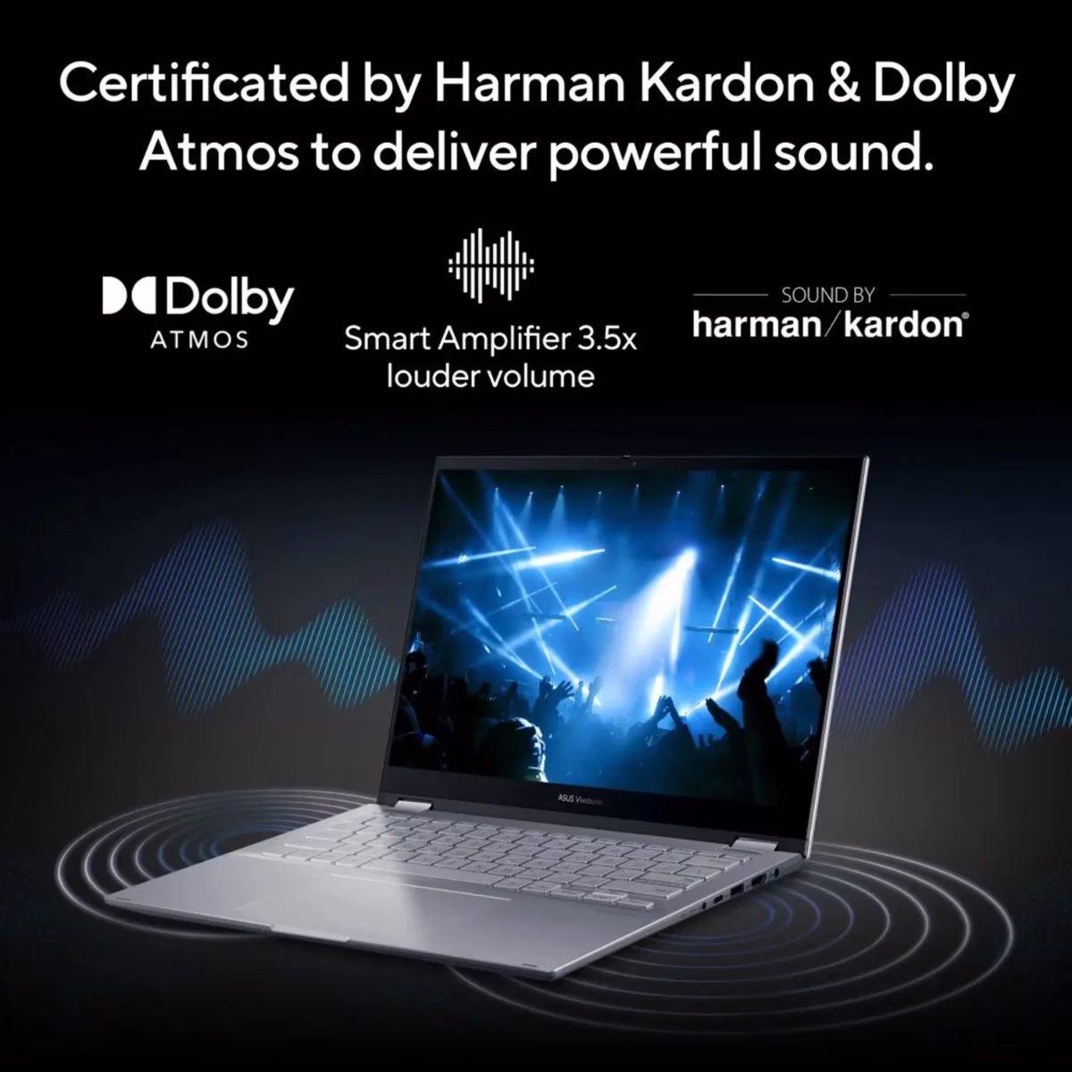 Experience versatility and power with the Asus Vivobook S14 Flip, featuring a 360° hinge that effortlessly switches between laptop and tablet modes. Driven by a 13th Gen Intel Core i5-13420H processor and 16GB RAM, it delivers seamless multitasking and smooth performance for work or play. Its sleek Cool Silver design houses a fast 512GB SSD, ensuring quick boot times and ample storage in a portable, premium chassis.