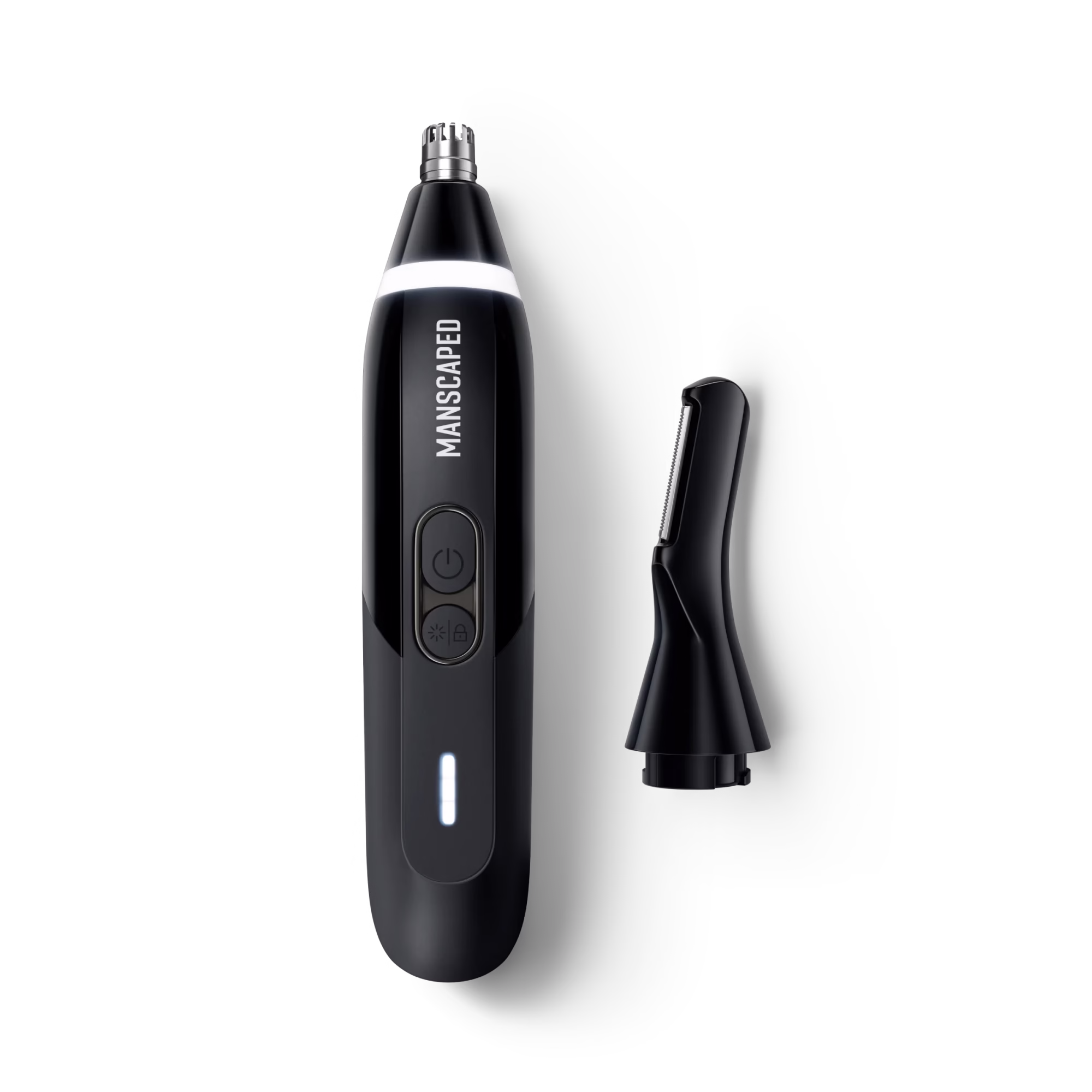 An updated dual-head system with a new eyebrow trimmer attachment offers refined trimming—for noses, ears, and now eyebrows.