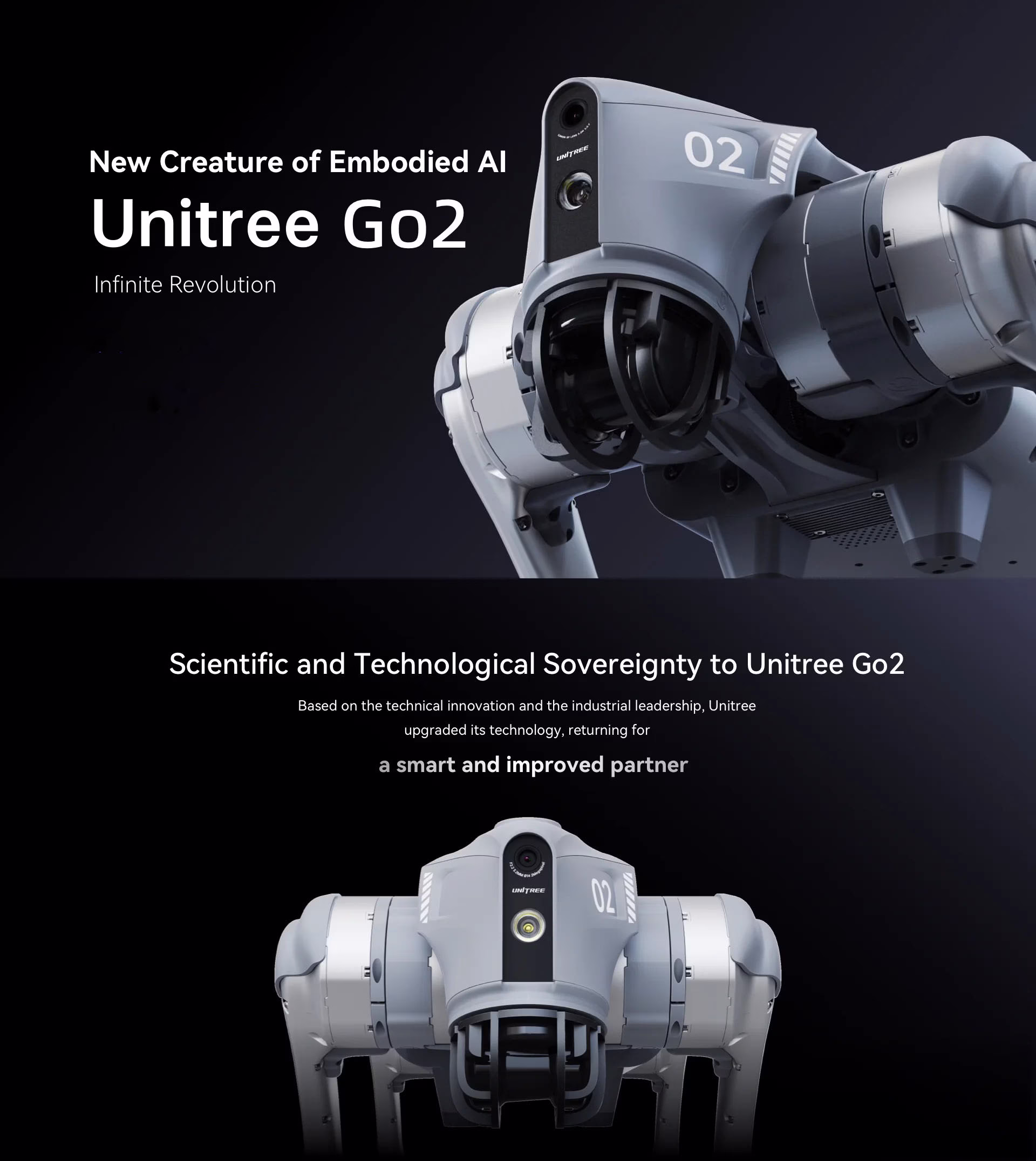 Go2 features with Unitree's self-developed 4D LIDAR L2 with 360°x96°hemispherical ultra-wide recognition, super small blind spot and a minimum detection distance as low as 0.05m, which makes Go2 realise all-terrain recognizing.